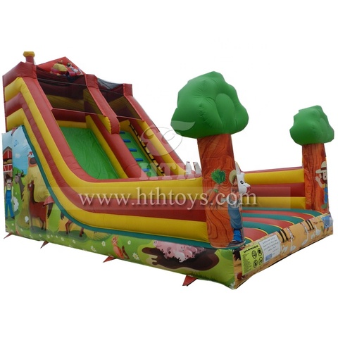 Grand toboggan gonflable en PVC jaune de style ferme pour garderie et parc sportif - Toboggan de parc à thème